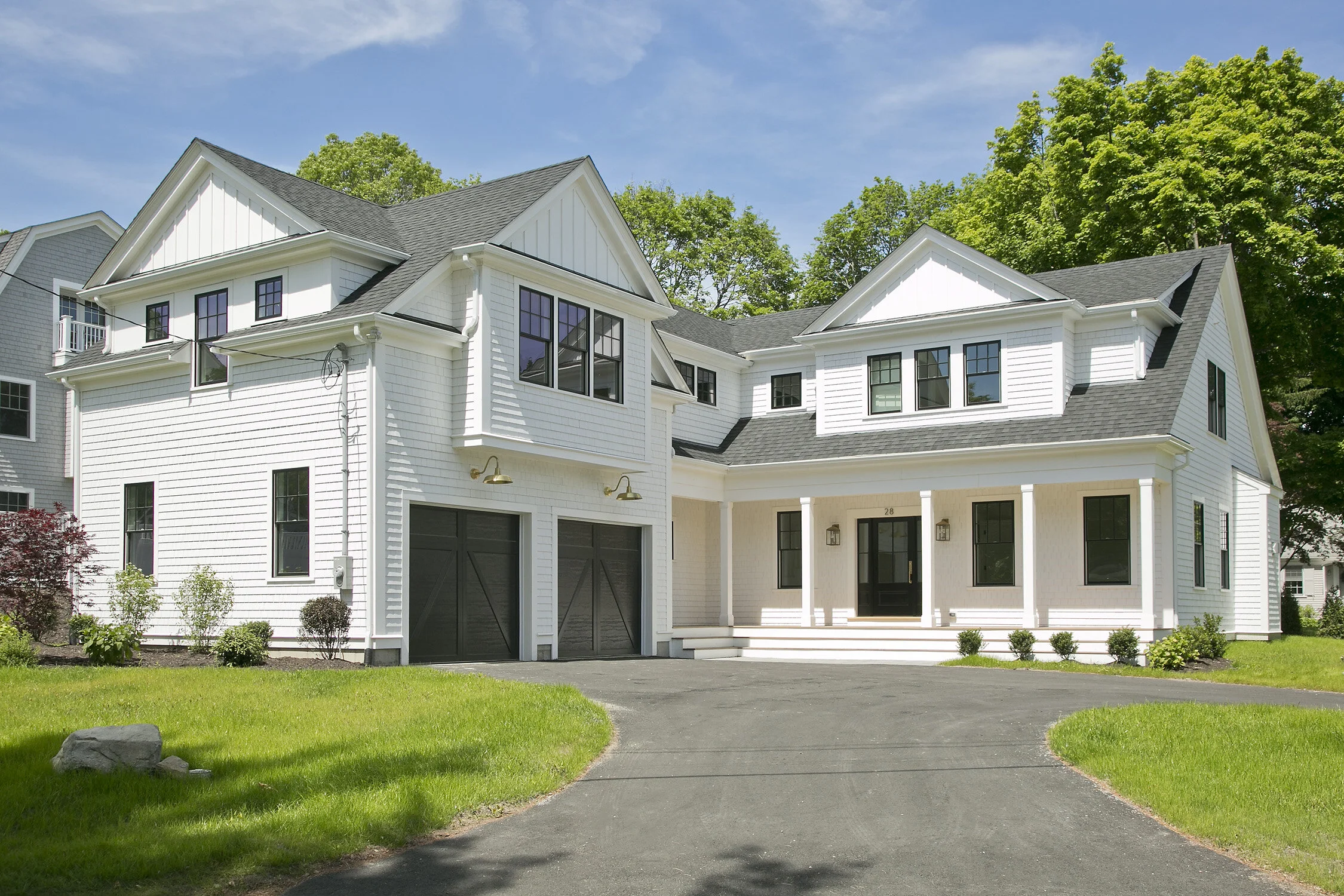 A modern take on a timeless Farmhouse style including five bedrooms completed in 2017, Hingham, MA